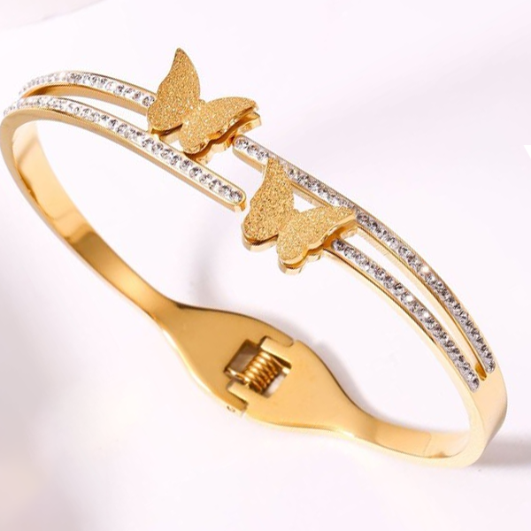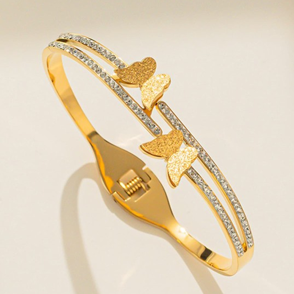 Women Diamond and Gold-Plated Bangle-Style Bracelet